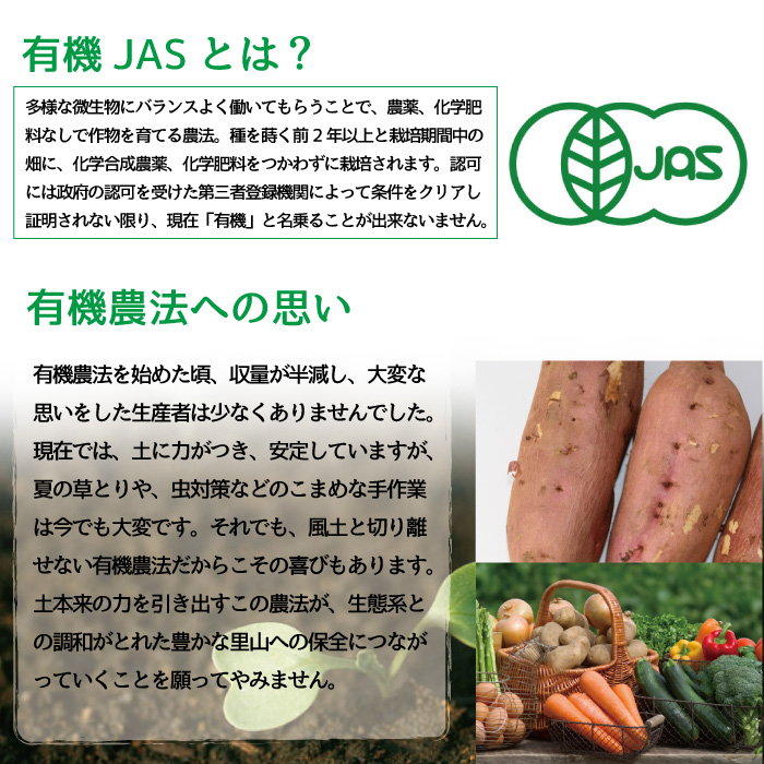 当社の住所を利用した偽サイトがでておりますのでご注意ください。 TOPこだわりの野菜 さつまいも ※ご注文状況・収穫状況により、商品は順次発送となりますので、 到着日指定はお受け致し兼ねます。 ※産地直送の為、他の商品と同梱する事が出来ませんので、ご了承頂けますようよろしくお願い致します。 ※訳有り品の為、形がいびつ・外皮に傷・サイズが小さい等がございます。ご了承お願い致します。 名称有機さつまいも(安納芋) 内容量10kg 保存方法 涼しい所で新聞紙にくるむなどし、13℃~15℃で保存し、乾燥にご注意してください。 製造者ちば風土の会(千葉県山武郡芝山町) 【千葉県産】有機さつまいも 安納芋 訳有り 10kg 有機JAS認定 安心・安全 ホクホク 食感 価格: ¥2,380 (税込) [ポイント還元 23ポイント~] 販売期間: 【発送伝票送主選択】: 通常、商品貼り付けする発送伝票の送り主は弊社になりますが、贈答用等の場合は送り主を選択出来ます。 選択してください (指定なし) (発送伝票に注文者様を記載) 数量: 個 在庫: × 在庫 × 返品についての詳細はこちら